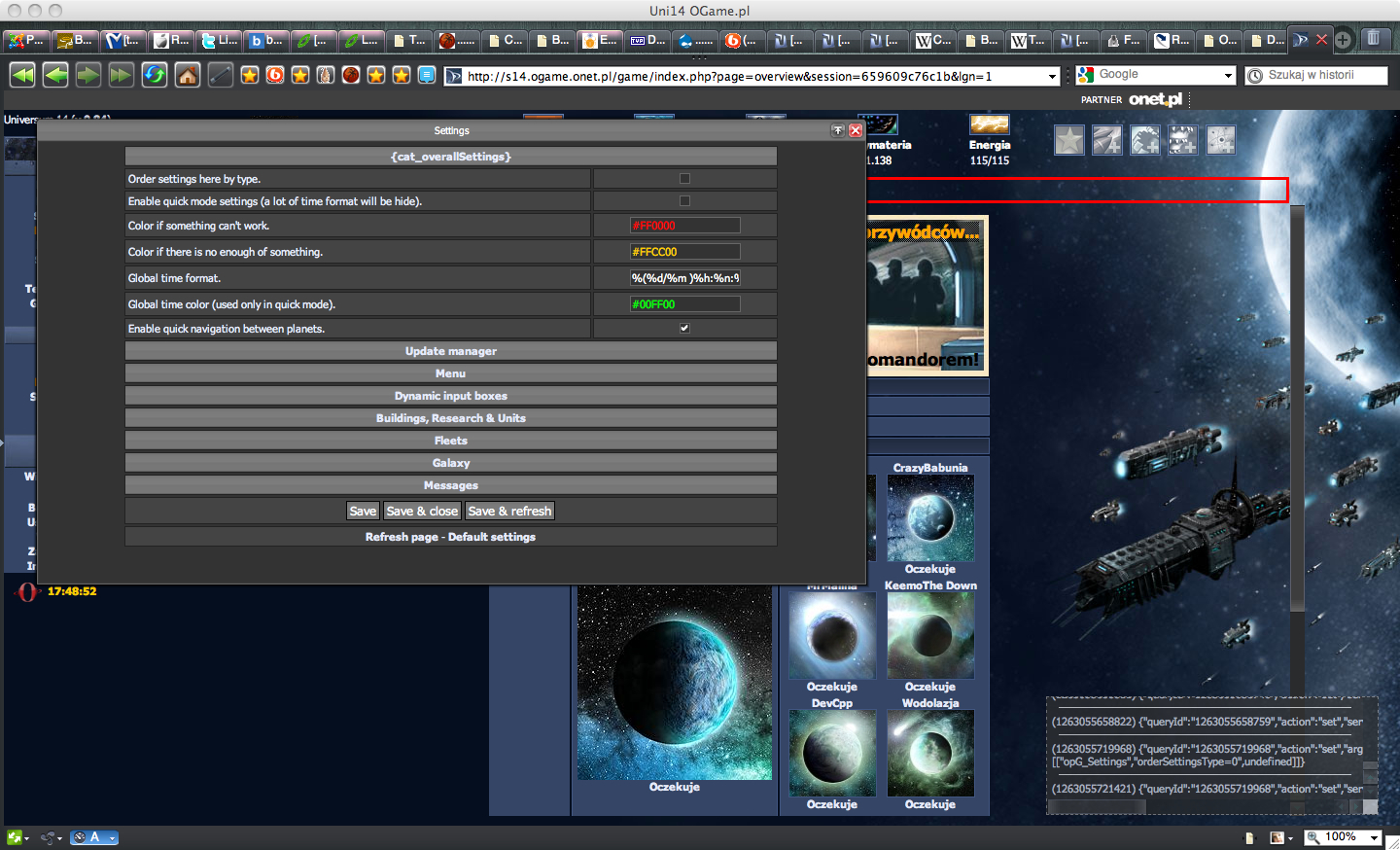 ,,And a last thing, could you try OperaGame — and other UserJS you are using — on Windows or Linux? There is no Mac in my circle so I'm not able to test it." - in home i also have win7, and there save settings work correctly.